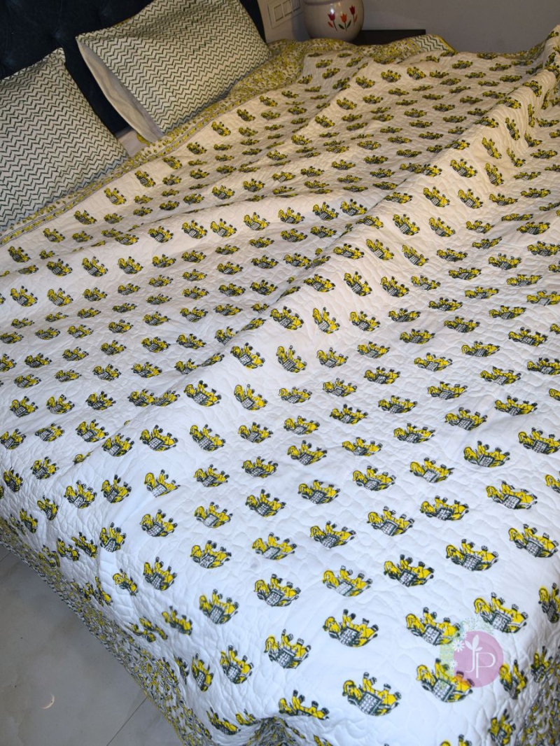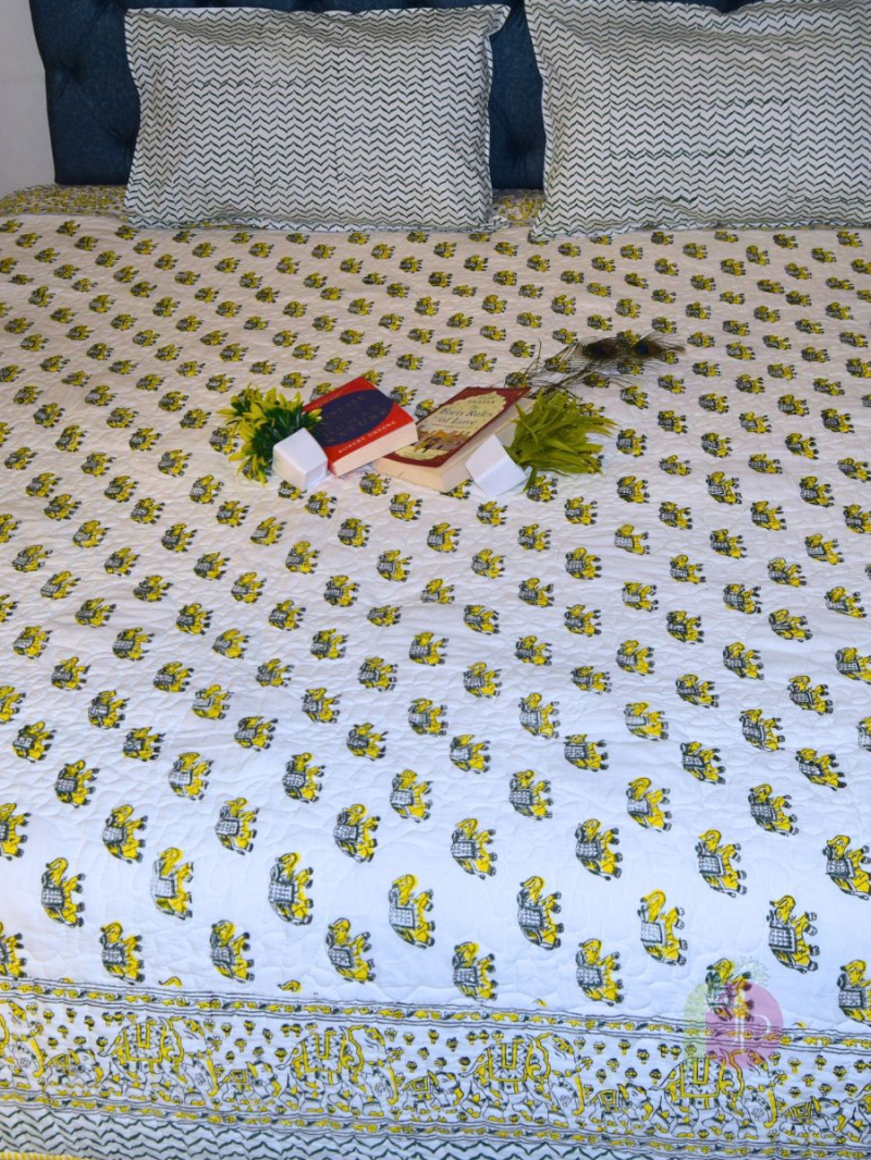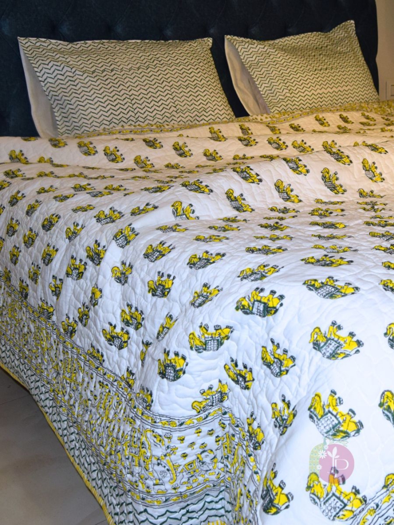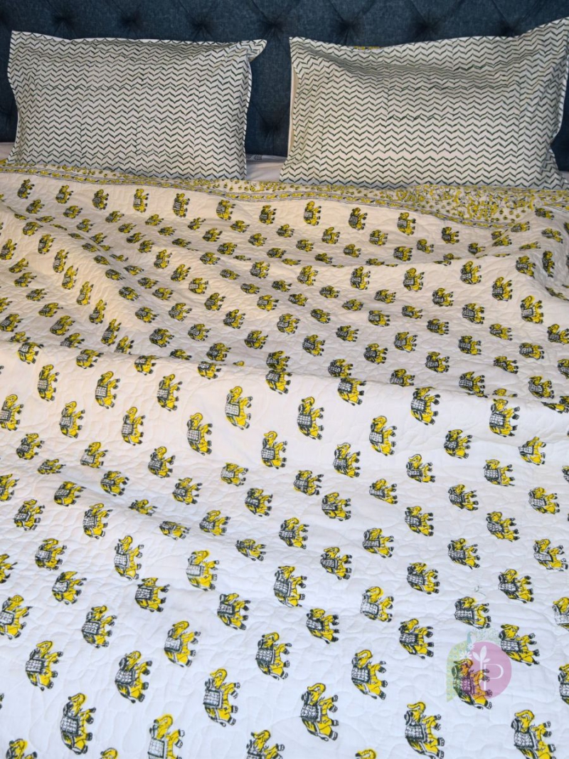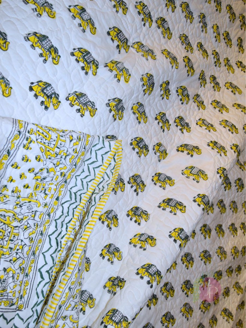 Buy Baby Elephant Jaal Hand Block Print King Size Quilted Cotton Bed Cover – Jaipuri Print
