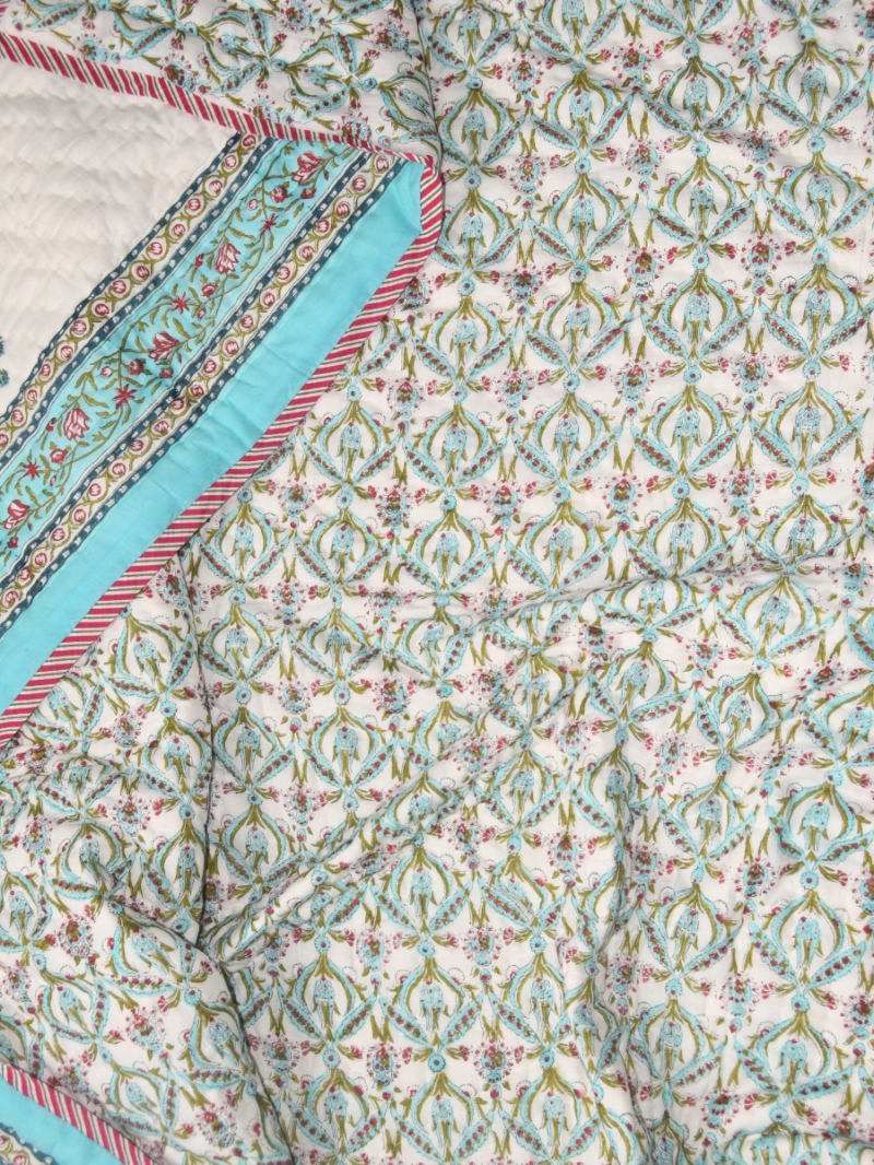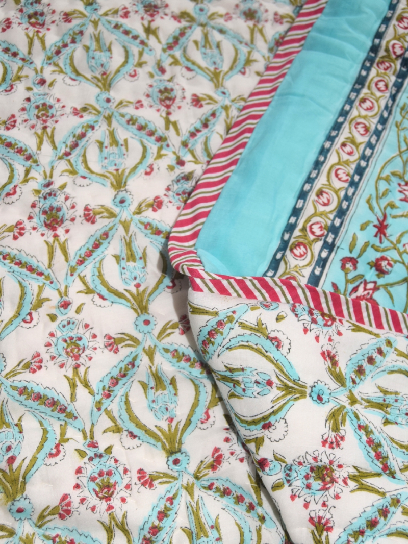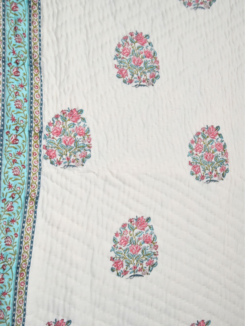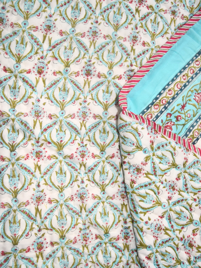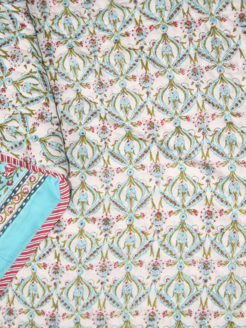 Order the Lungwort Pink & Blue Quilt today and enjoy premium comfort with traditional Jaipuri style! Free delivery in India + Fast International Shipping available. Limited stock only, so buy now!