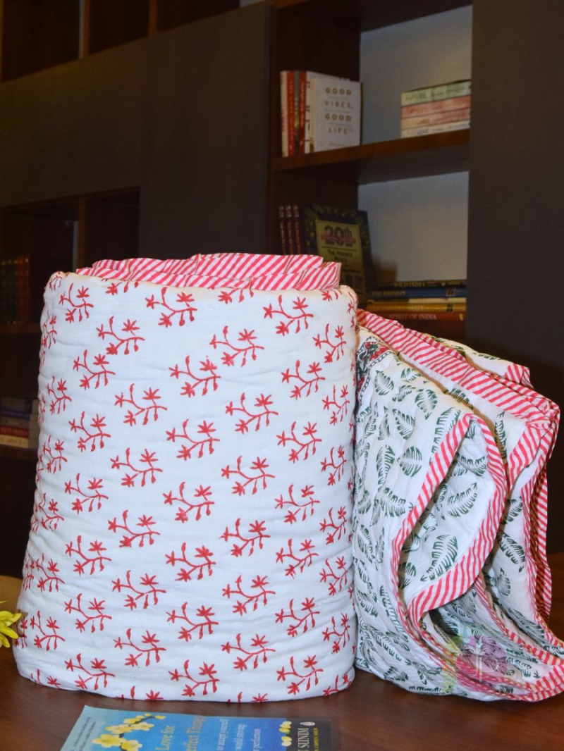 Buy Jaipuri Red Leaf Quilt – Hand Block Printed Cotton Razai for All Seasons