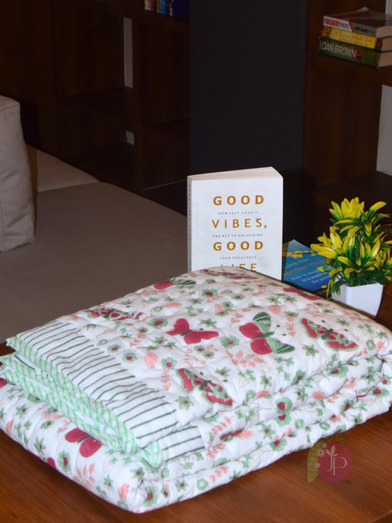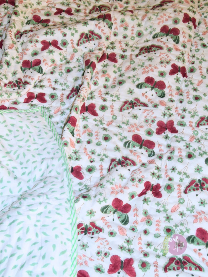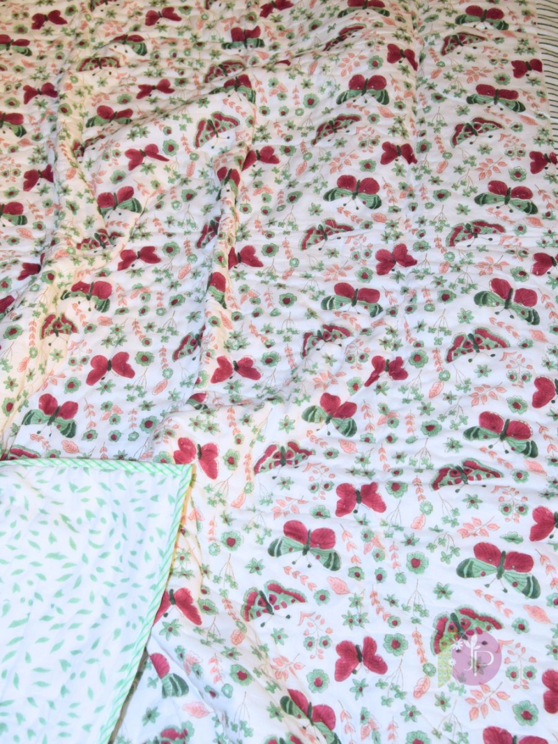 This AC quilt or blanket is not just a piece of bedding—it’s a lovingly crafted item that brings a touch of India’s rich hand-block printing heritage into your nursery. The red butterfly symbolizes playfulness, growth, and protection, making this quilt a meaningful gift or addition to your child's bedding collection. Whether you are in India, the US, the UK, or anywhere abroad, this Jaipuri quilt is the perfect fusion of style and substance.