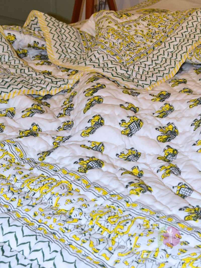 - Small Elephant Hand Block Print Quilt – Single & Double Bed