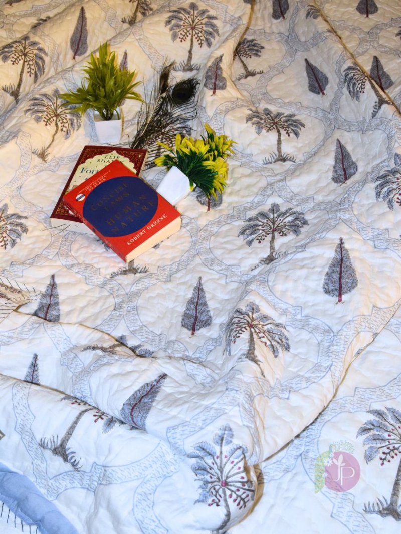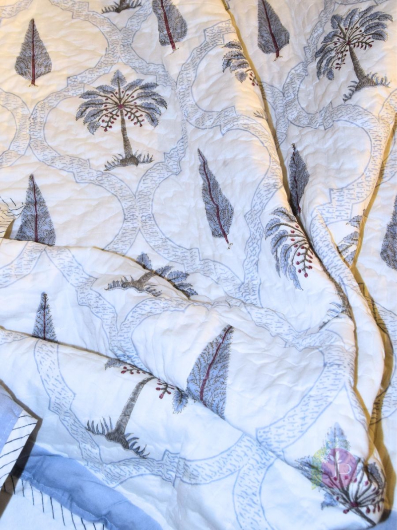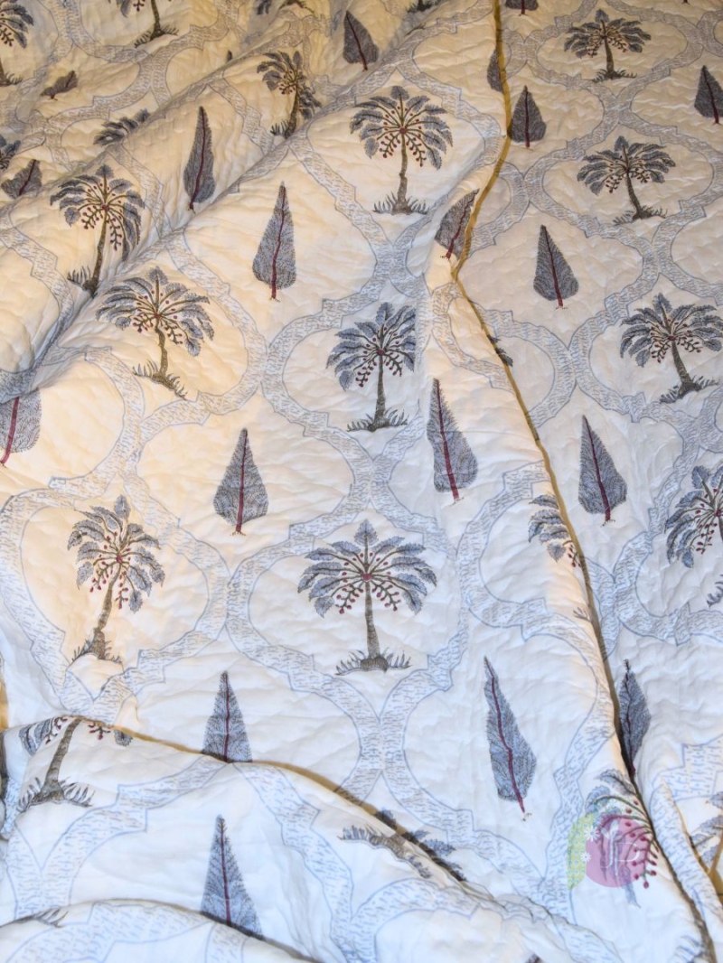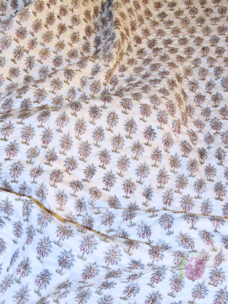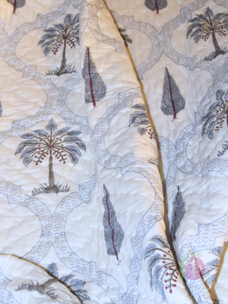 Jaipuri quilt, tree design quilt, hand block print bedding, cotton razai, buy quilts online, single bed quilt, double bed quilt, Jaipuri bedding, handmade Indian quilts, Rajasthan razai, Jaipur quilt shop, eco-friendly cotton quilt