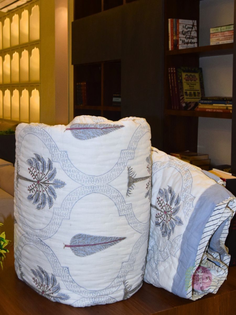 Discover the warmth of heritage with our Jaipuri Tree Design Quilt, handcrafted using the age-old technique of hand block printing. Made with 100% soft cotton and filled with natural cotton batting, this quilt offers unmatched comfort and elegance for both single and double beds. Each quilt is adorned with an intricate tree motif design that reflects Rajasthan’s deep-rooted artistic legacy. Ideal for modern urban homes and traditional Indian spaces alike, this product embodies both culture and comfort.