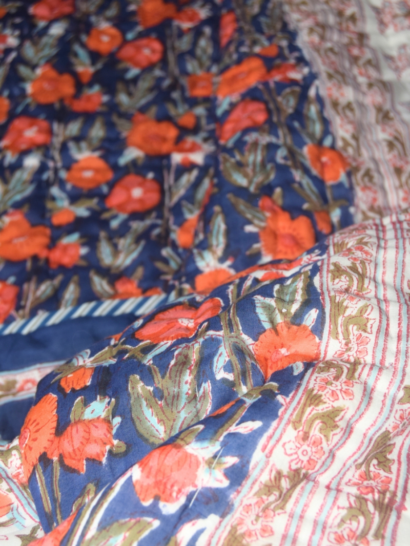Buy Jaipuri Print Quilt – Red, Orange & Blue Floral – Premium Cotton Razai Online