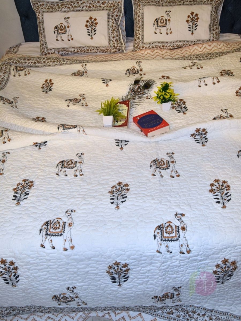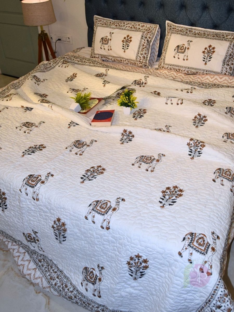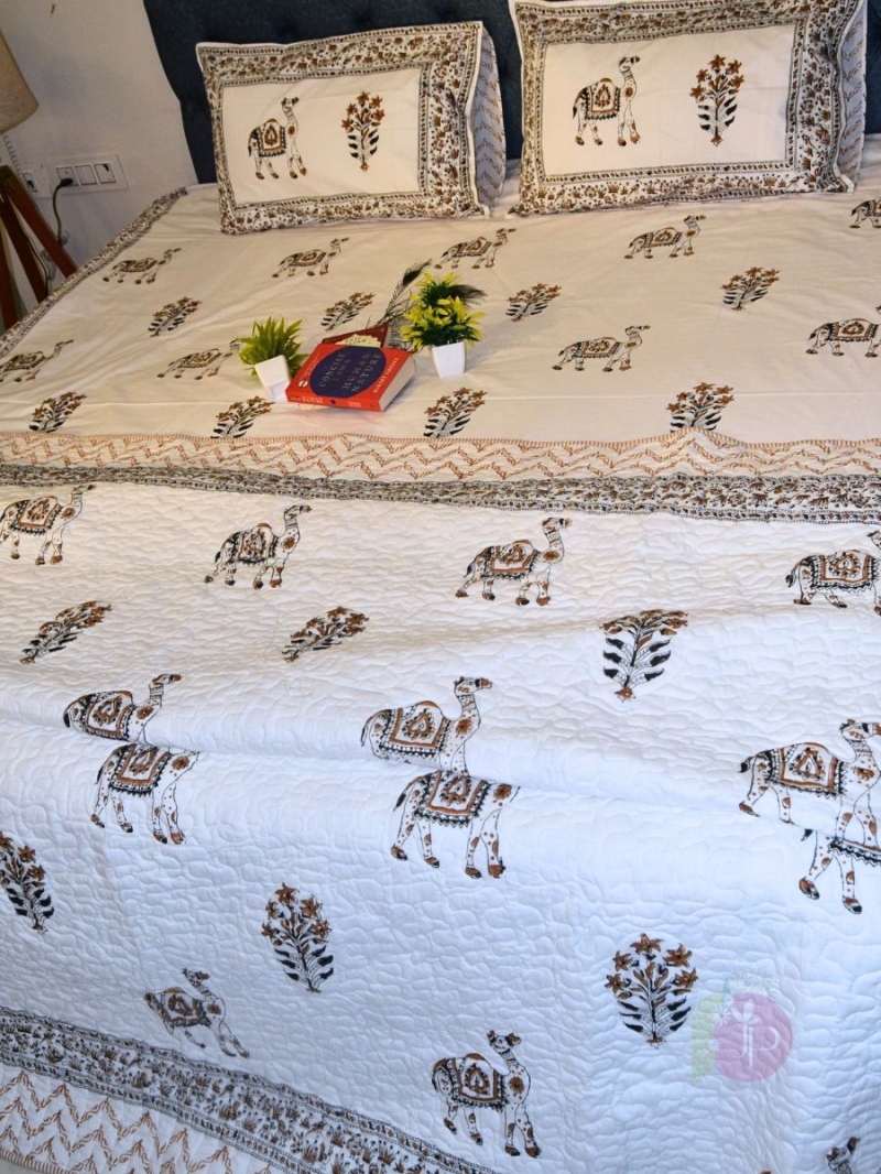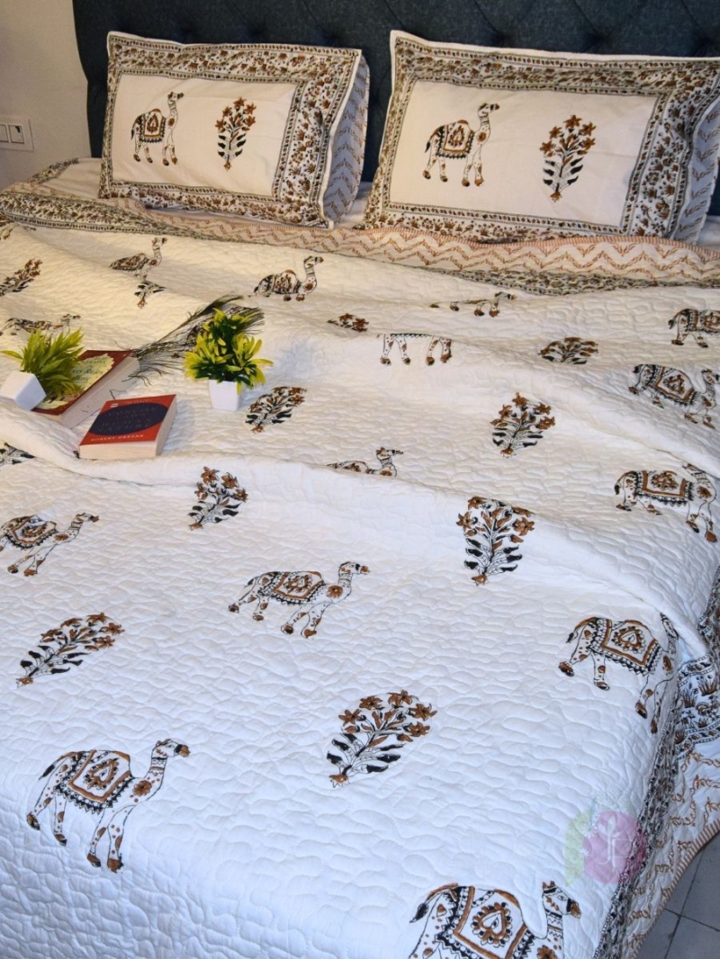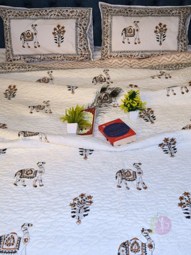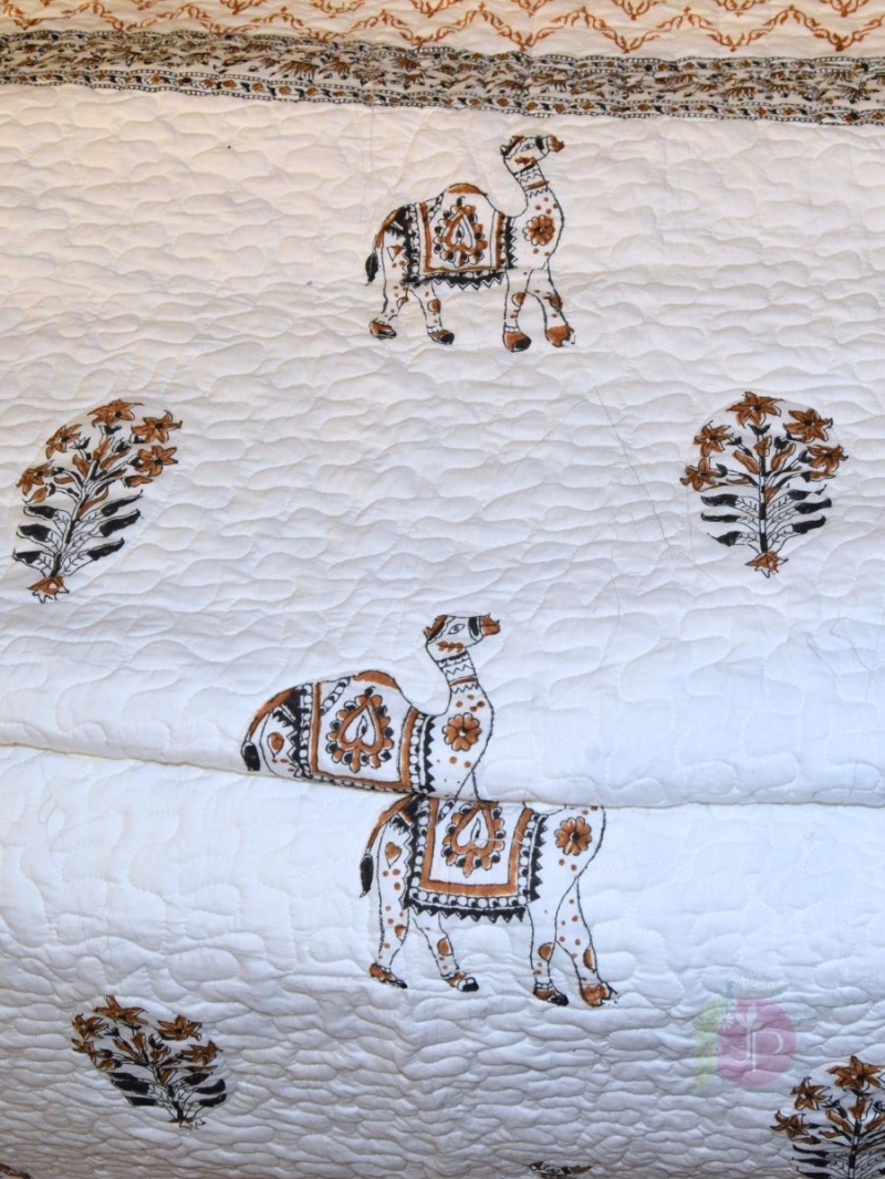 Buy Desert Camel Hand Block Print King Size Quilted Cotton Bed Cover – Jaipuri Print