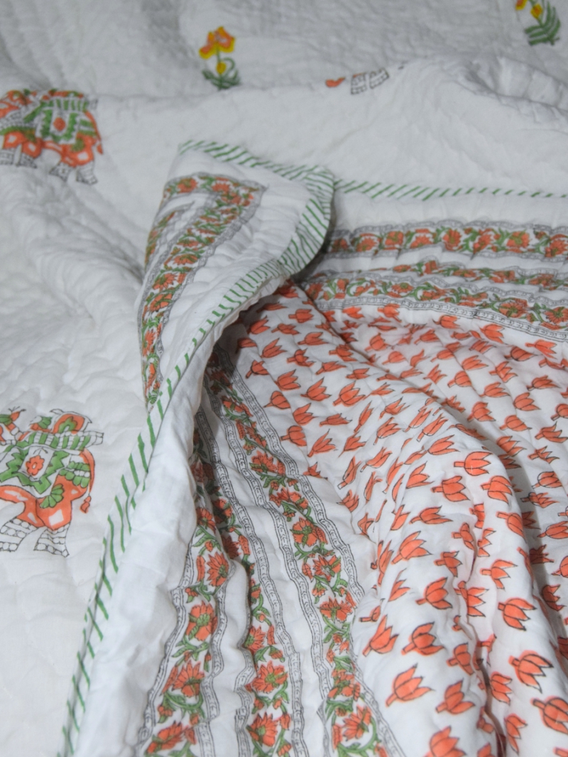 Gajpushp - Luxury Maslin Razai | Hand Block Printed Jaipuri Quilt