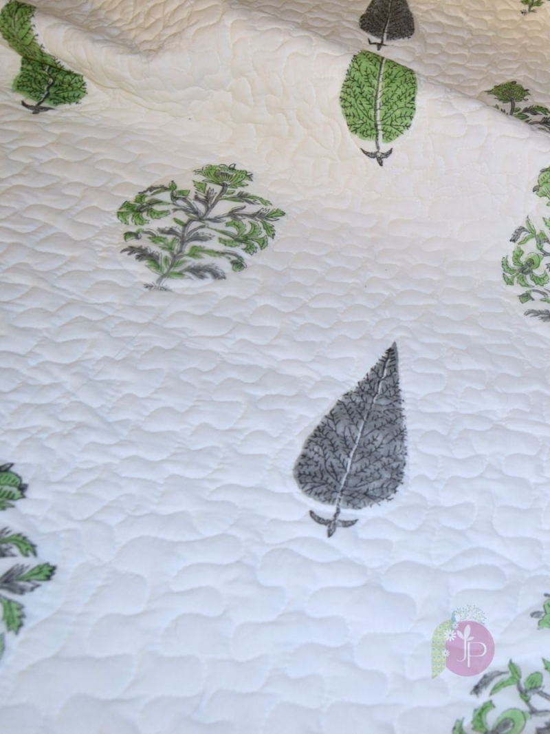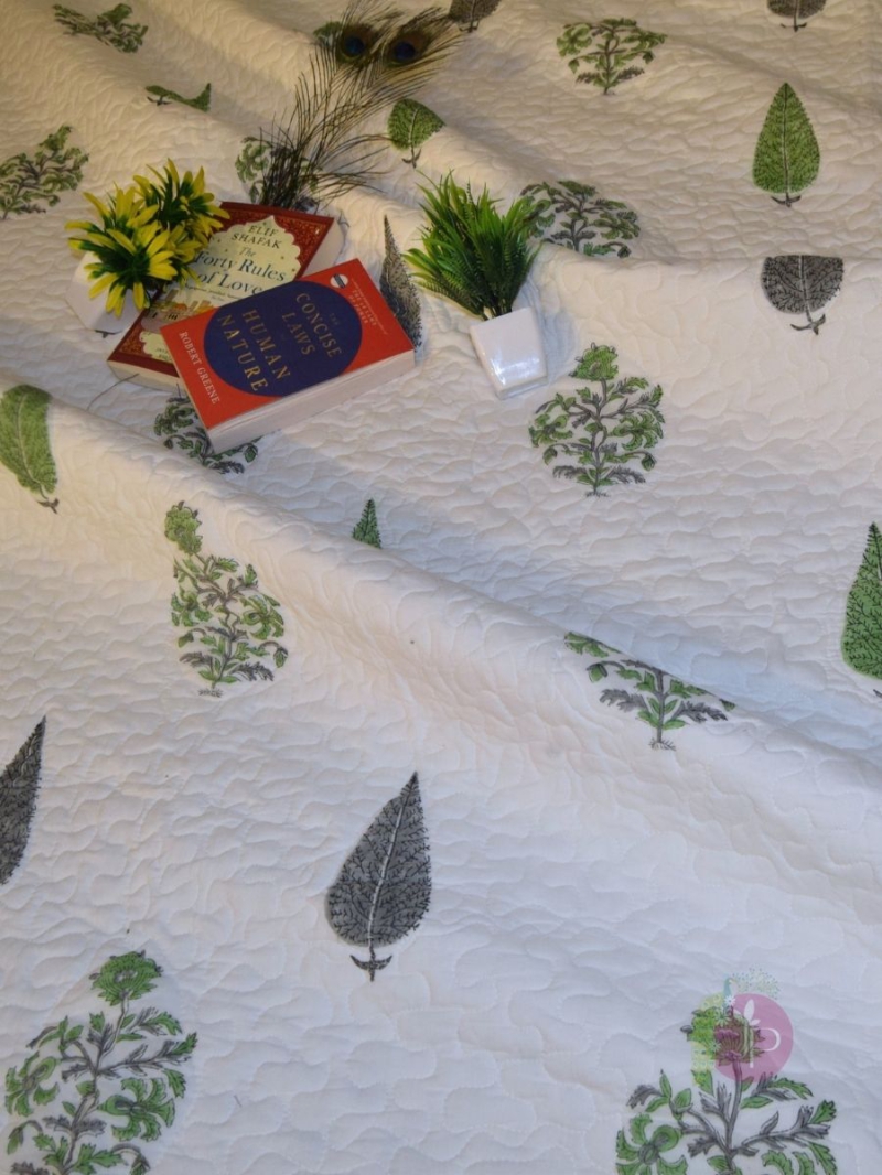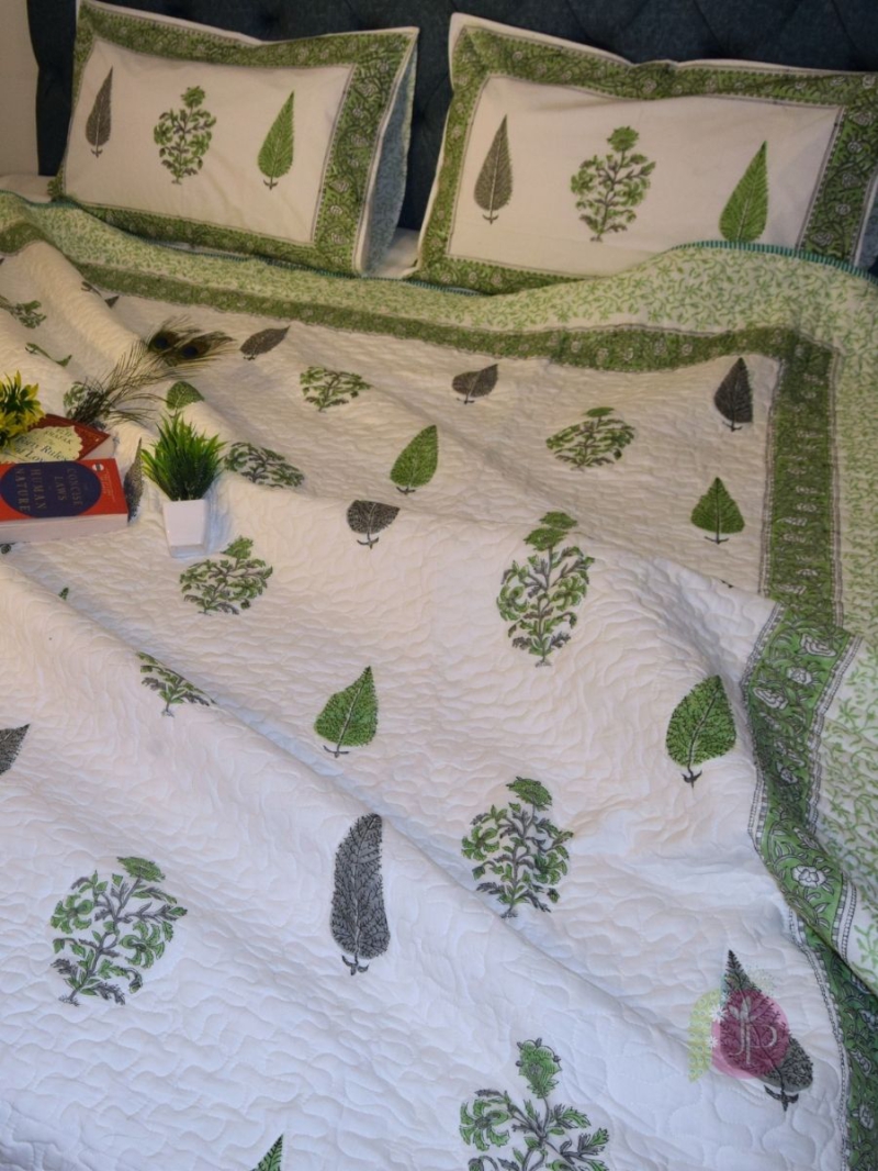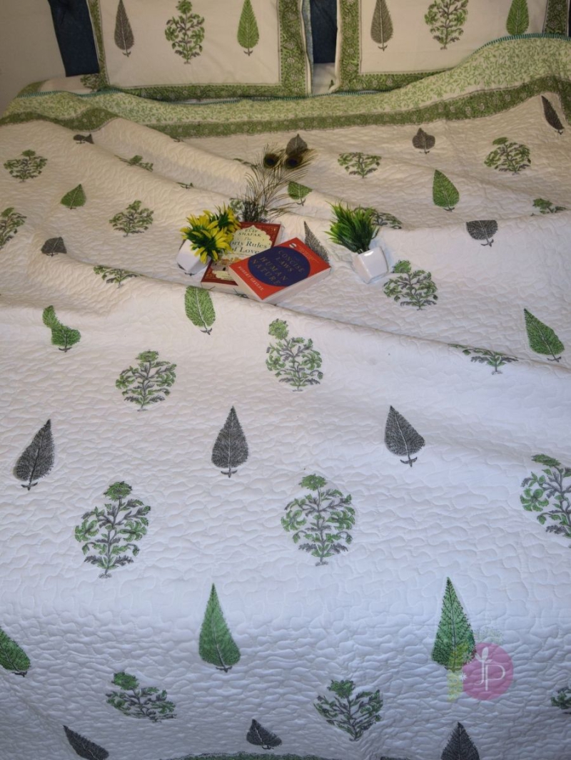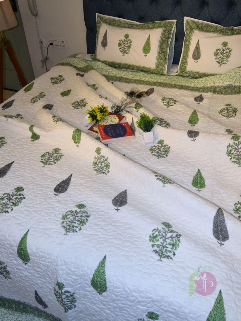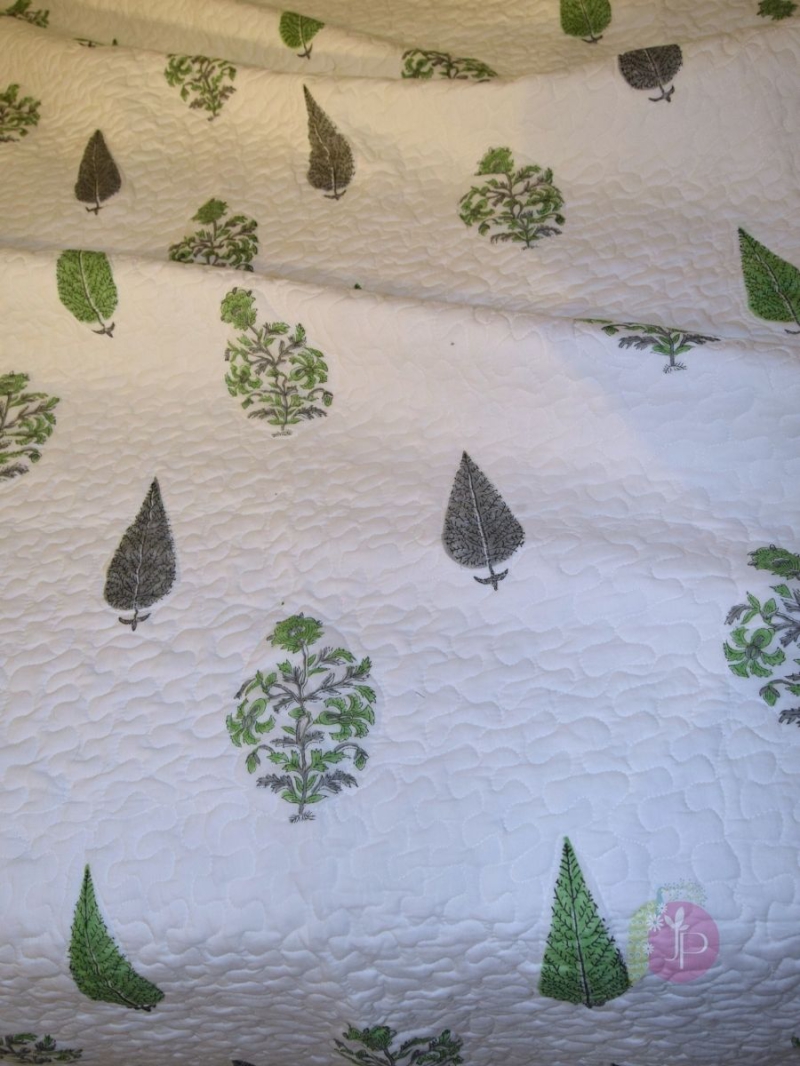 Buy Green Forest Hand Block Print King Size Quilted Cotton Bed Cover – Jaipuri Print