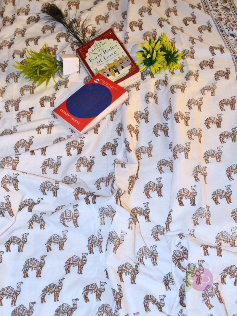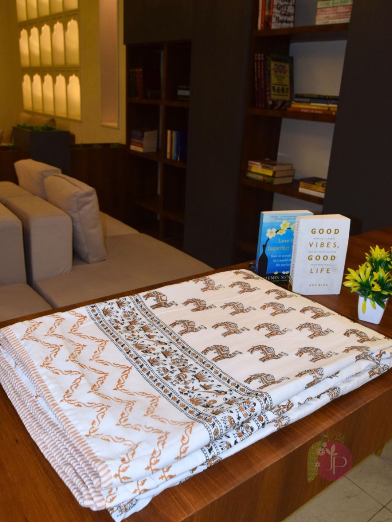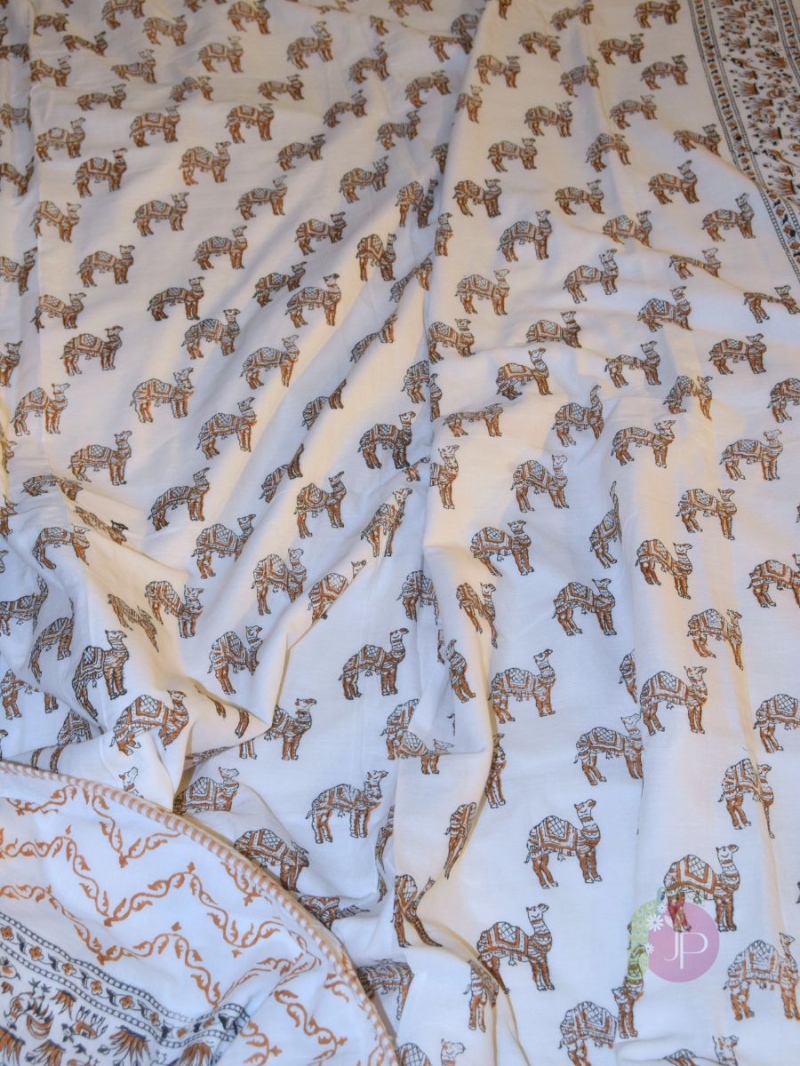 Buy Jaipuri Hand Block Dohars Camel Print Cotton AC Blanket Traditional Rajasthani Dohar