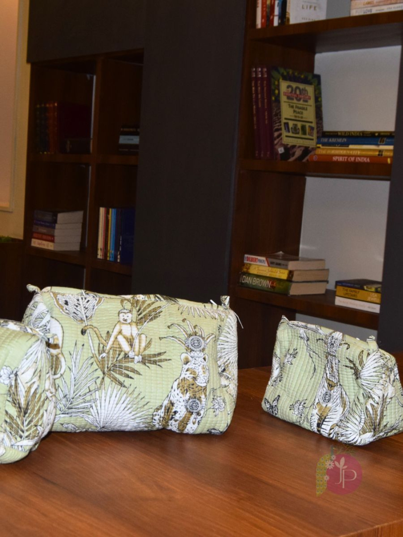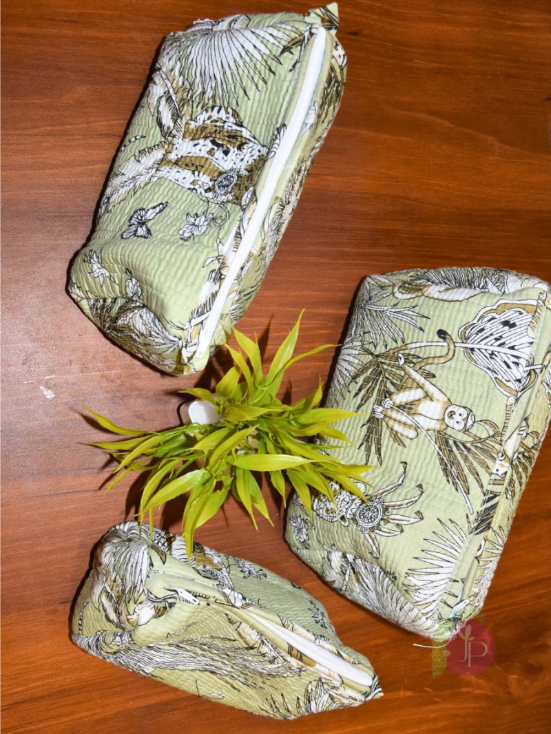 Experience timeless Indian craftsmanship with our Jaipuri Forest Toiletry Bag. Adorned with intricate hand-block printed forest motifs, this pouch reflects the charm of traditional Rajasthani design in a modern, practical form.