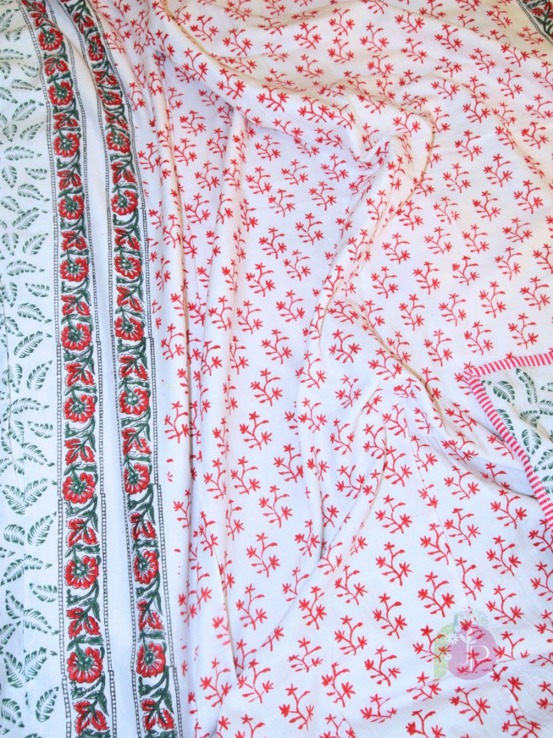 Hand Block Printed Dohars, Cotton Dohar Blankets Online, Jaipuri AC Blankets, Red & Green Dohars