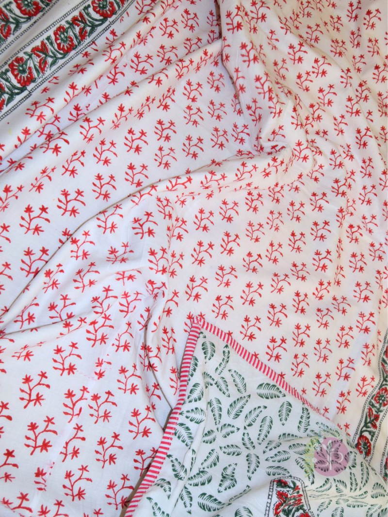 Buy Online Red Leaf Jaipuri Cotton Dohar – Hand Block Printed AC Blanket from Rajasthan