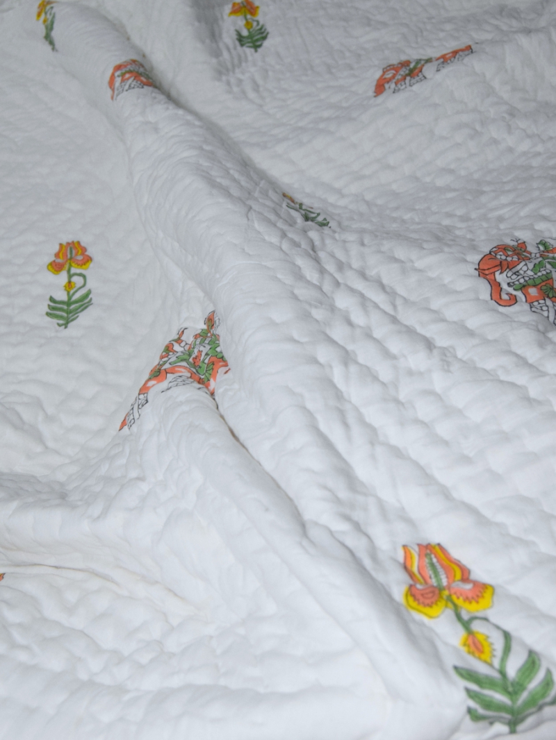 Kesarika - Luxury Maslin Razai | Hand Block Printed Jaipuri Quilt