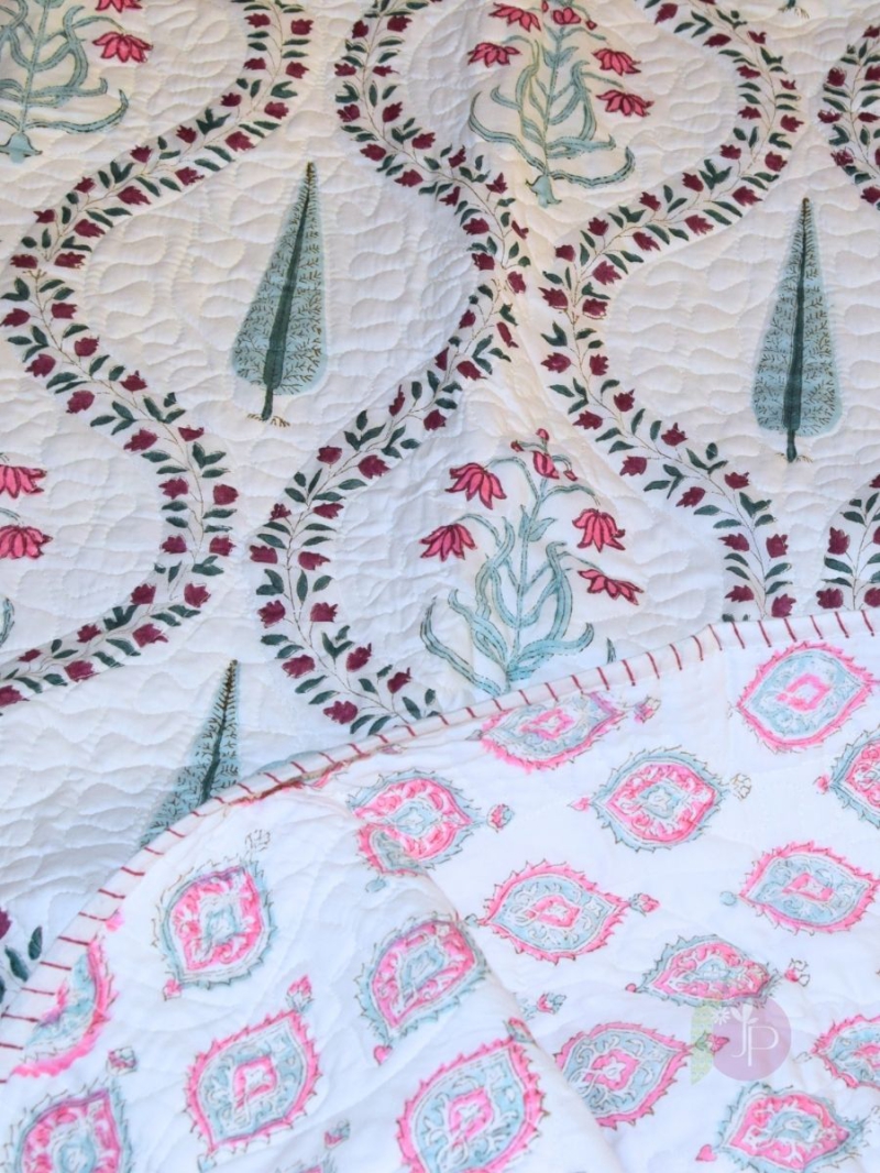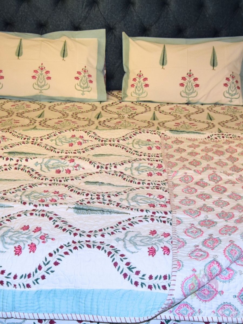 The art of Jaipuri hand block printing dates back centuries, known for its intricate wooden block patterns and natural dyes. Our lotus flower design not only brings timeless beauty but also promotes a sustainable and ethical choice for your bedding needs. Handmade by skilled artisans in Jaipur, this bed cover uses 100% premium cotton that's breathable, skin-friendly, and suitable for both Indian summers and cozy winters.