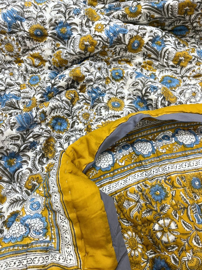 Mimosa Flower Jaipuri Quilt – 100% Organic Cotton