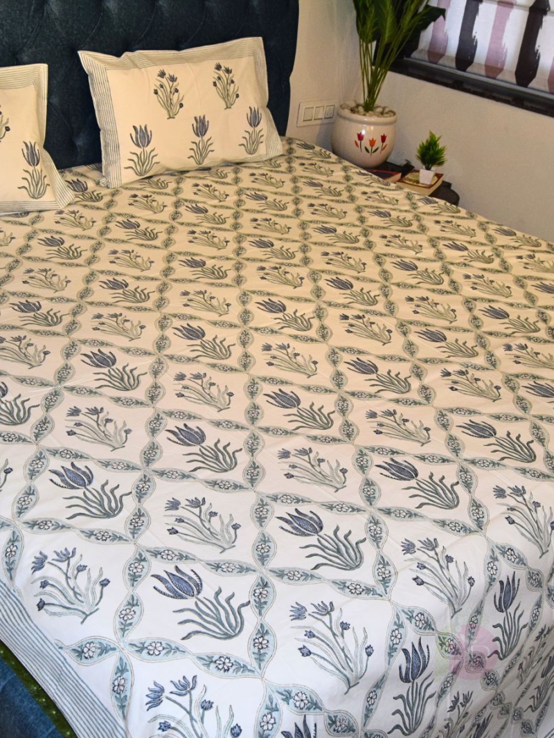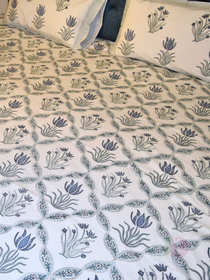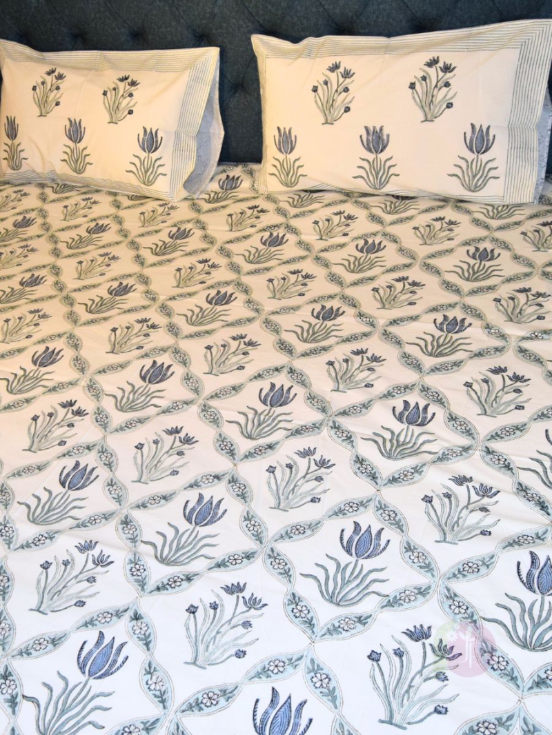 Every piece is a masterpiece, reflecting centuries-old Jaipur artistry. The combination of rich blue floral prints against a soft cotton white base offers a soothing, luxurious feel ideal for modern homes in Bengaluru, Mumbai, Delhi, Pune, and across India.