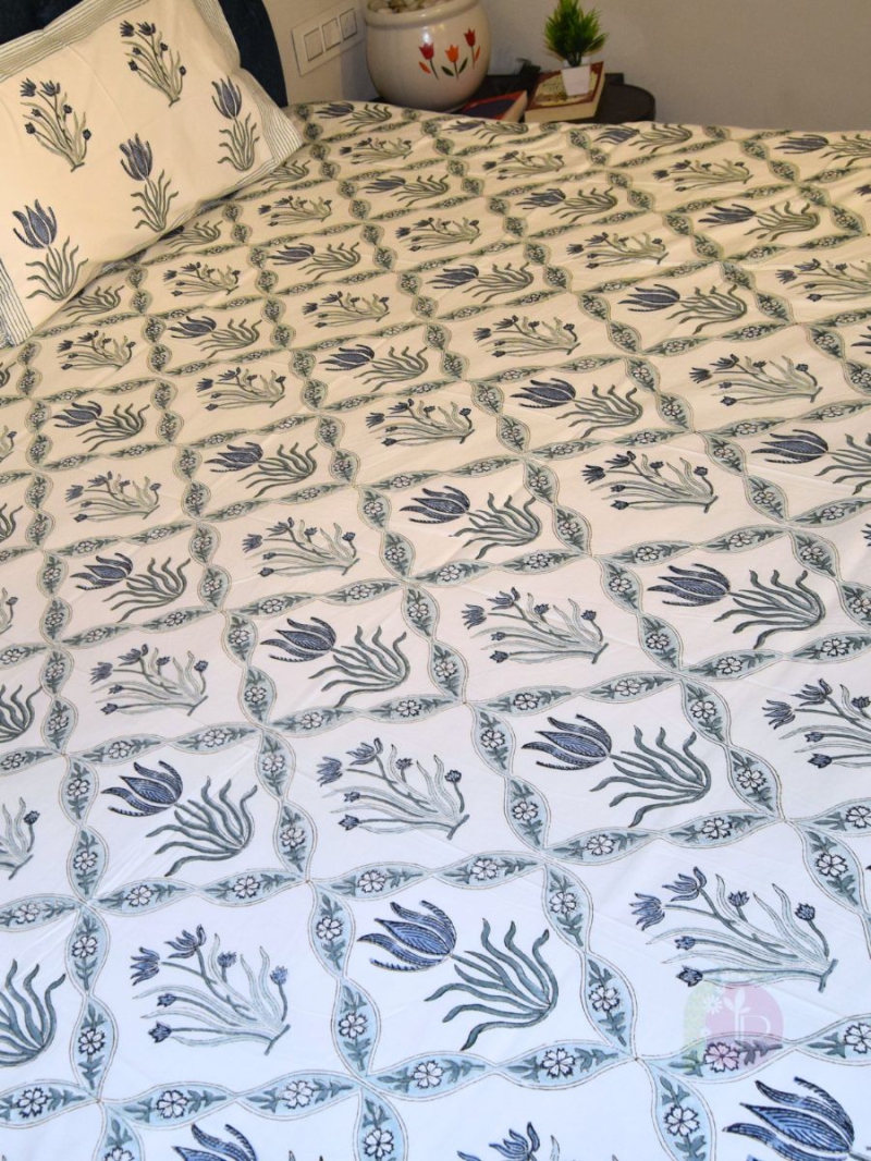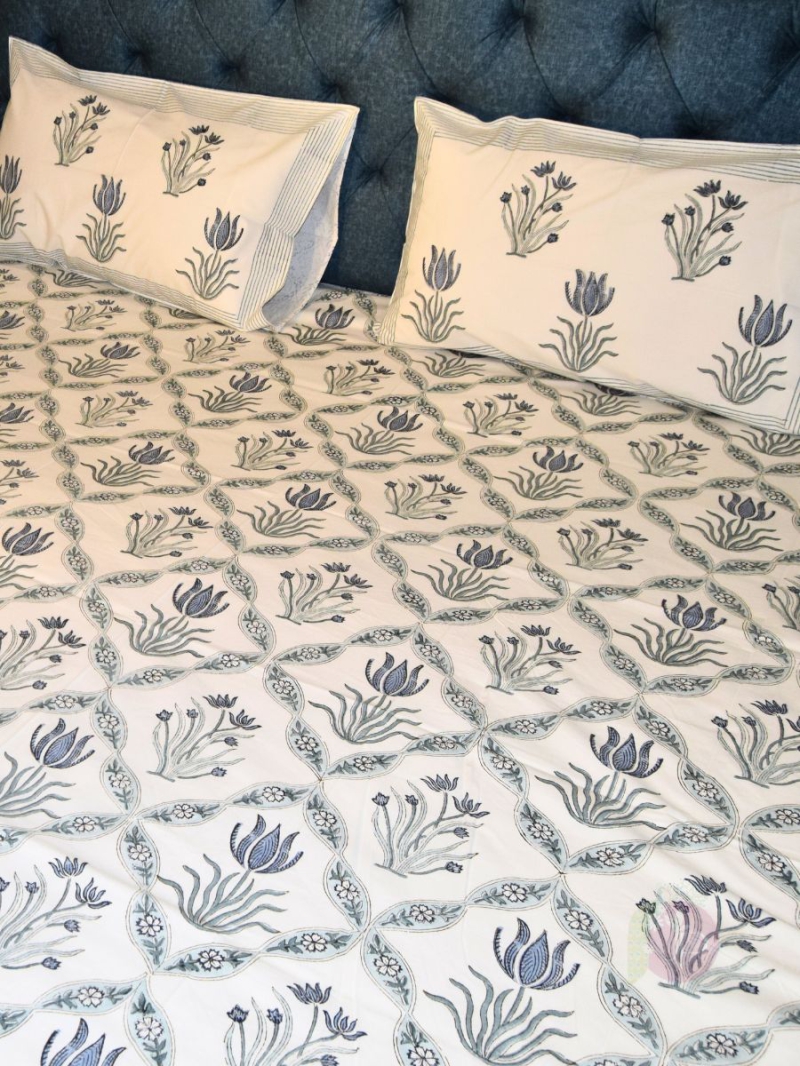 Buy Online Blue Flower Forest Hand Block Cotton Bedsheet Online – Double & Single Size from Jaipur