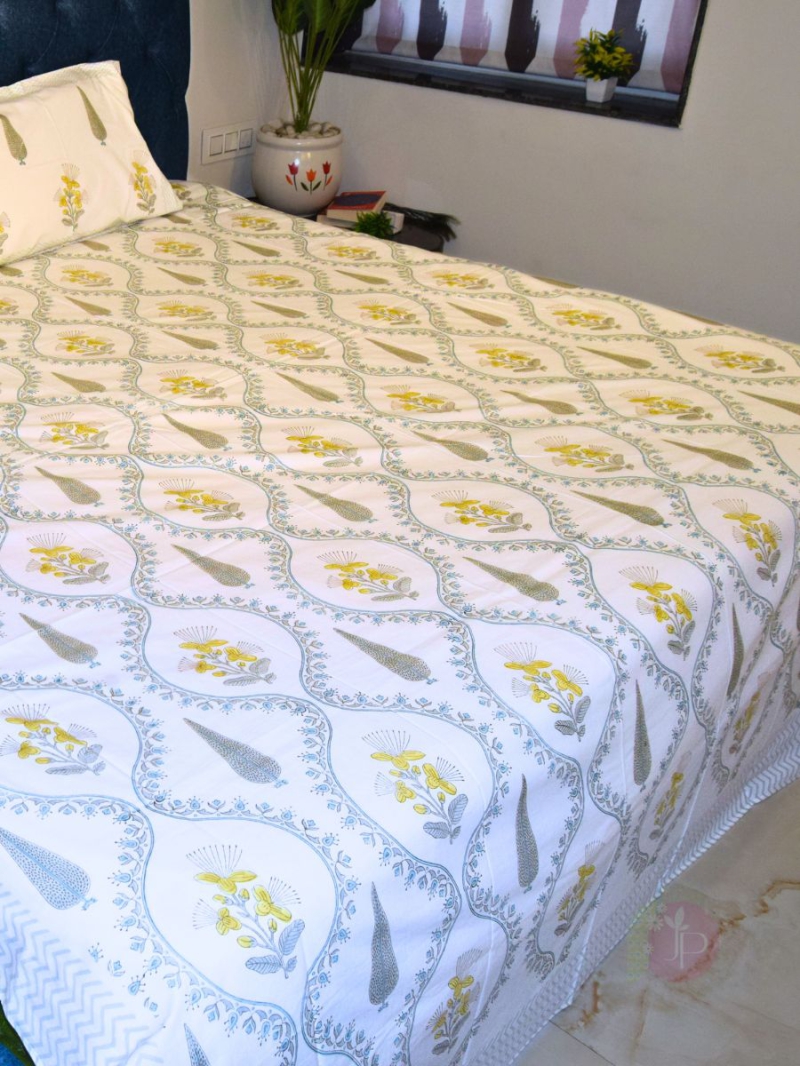 Why Choose Our Yellow Flower Hand Block Bedsheet?