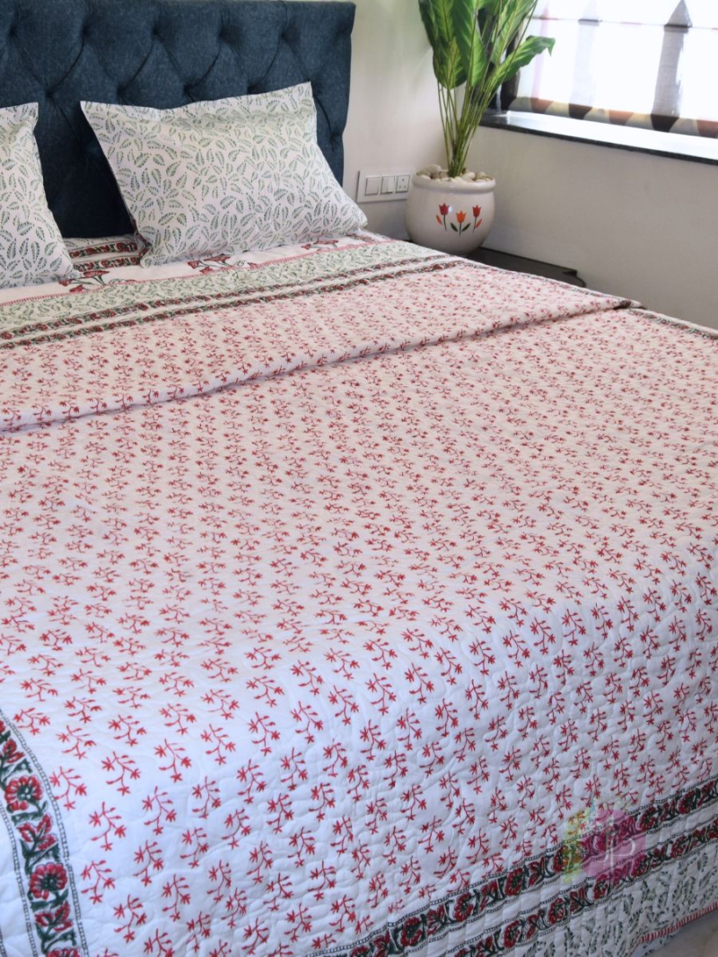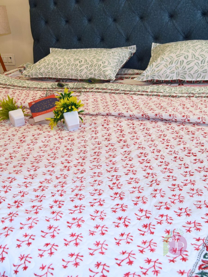 Why Choose Jaipuri Print Red Leaf Quilted Bed Cover?