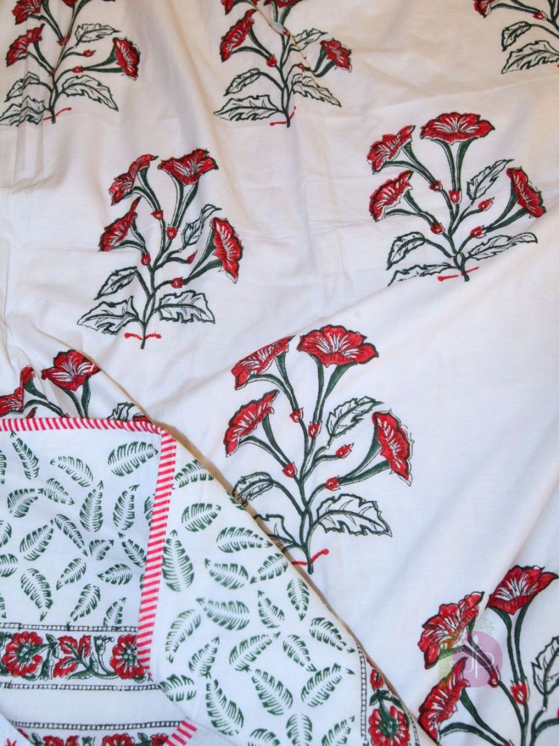 Buy Red Rose Flower Hand Block Jaipuri Print Cotton Dohar AC Blanket - Lightweight Summer Comfort with Traditional Elegance