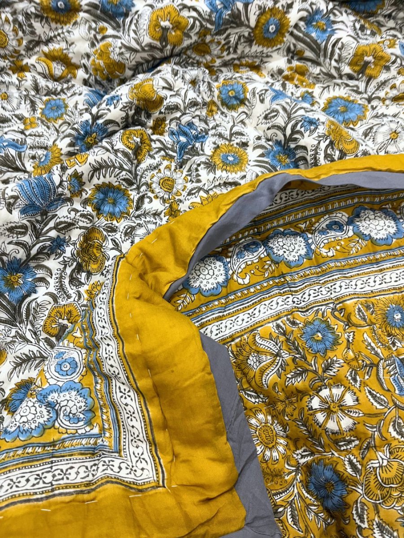 Scabiosa Flower Jaipuri Quilt – 100% Organic Cotton