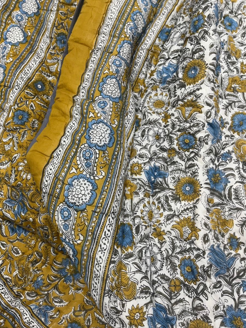 Jaipuri Print honors Rajasthan’s heritage of textile craftsmanship through sustainable materials and authentic printing methods. Each quilt reflects the skill of Jaipur artisans and the brand’s commitment to timeless comfort, quality, and tradition.