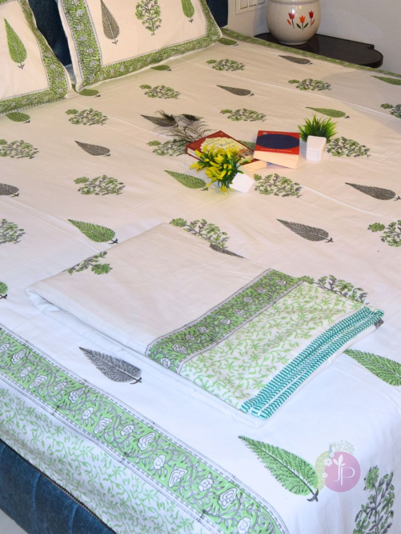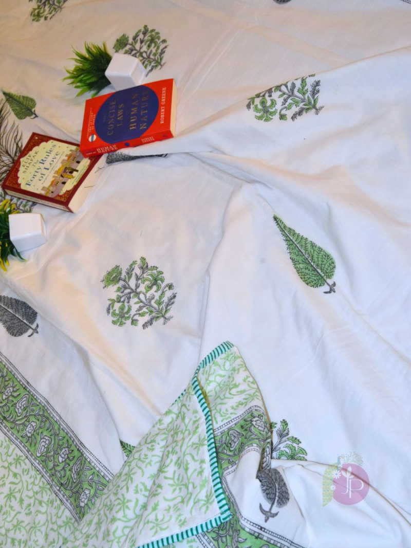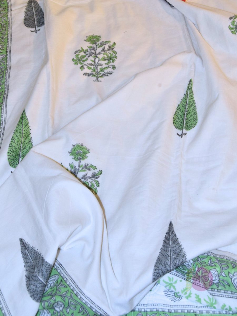 Buy Tilak Forest Design Green and Grey Jaipuri Cotton Dohar – Traditional Hand Block Printed AC Blanket
