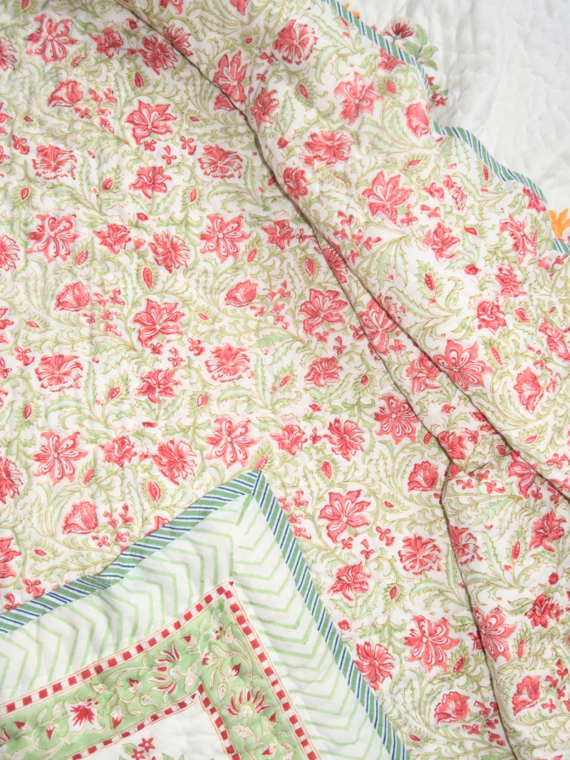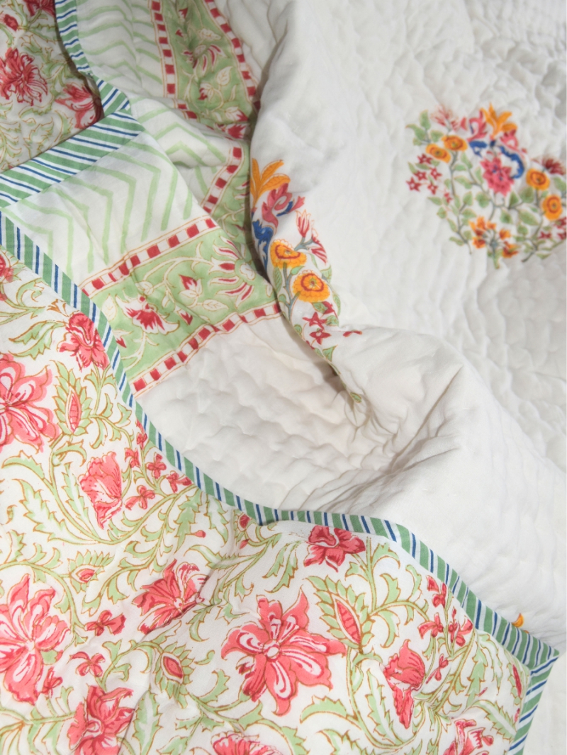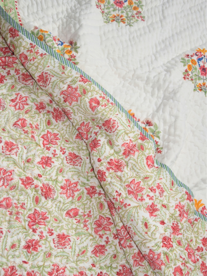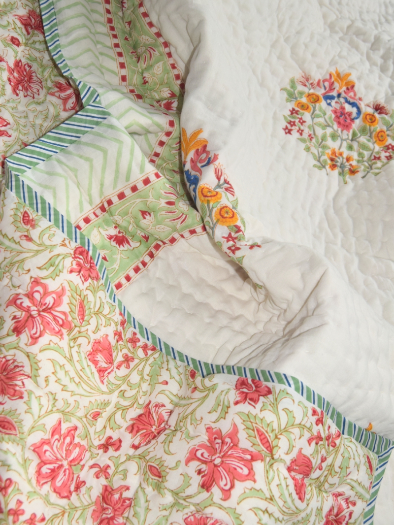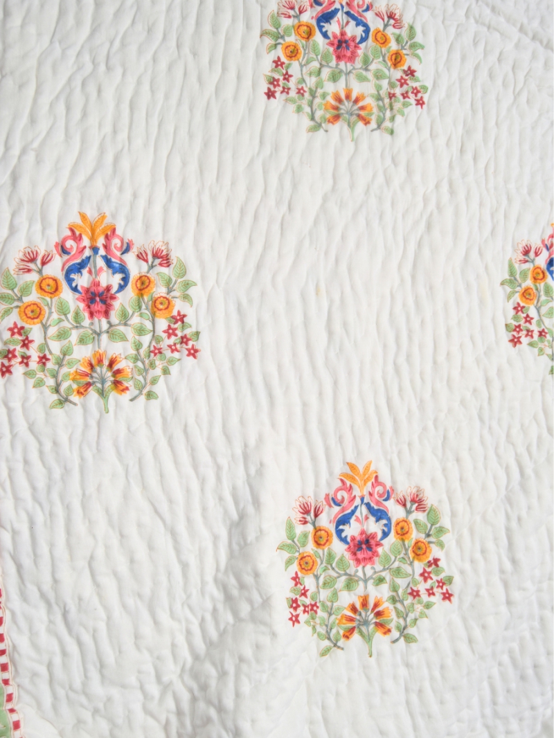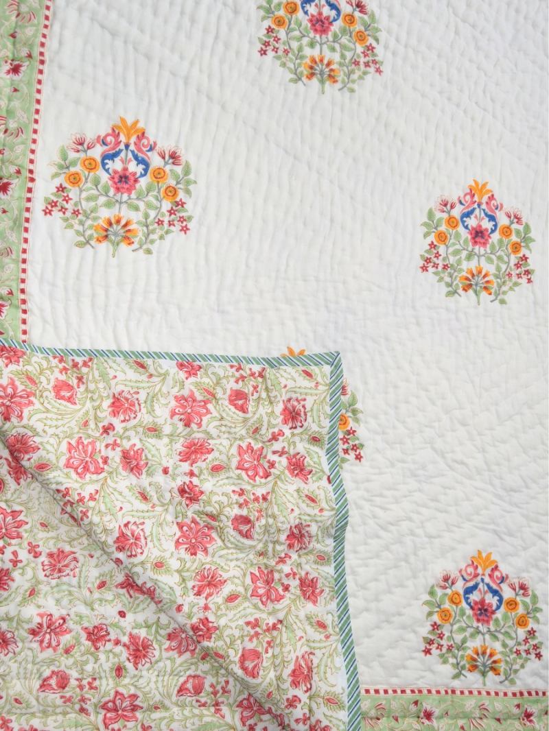 This quilt is not just functional, it is a piece of art for your bedroom décor. It is a great gifting option for weddings, baby showers, housewarming parties and festivals. People across India and abroad love this design for its lively floral theme and pure cotton comfort.