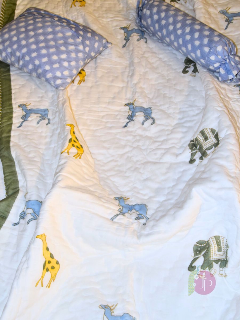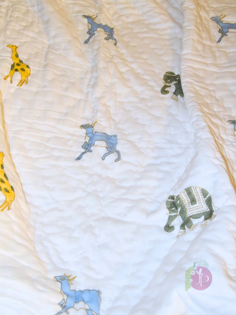 Buy Online Forest Animal Design Jaipuri Baby & Kids Quilt – Hand Block Printed Organic Cotton Razai