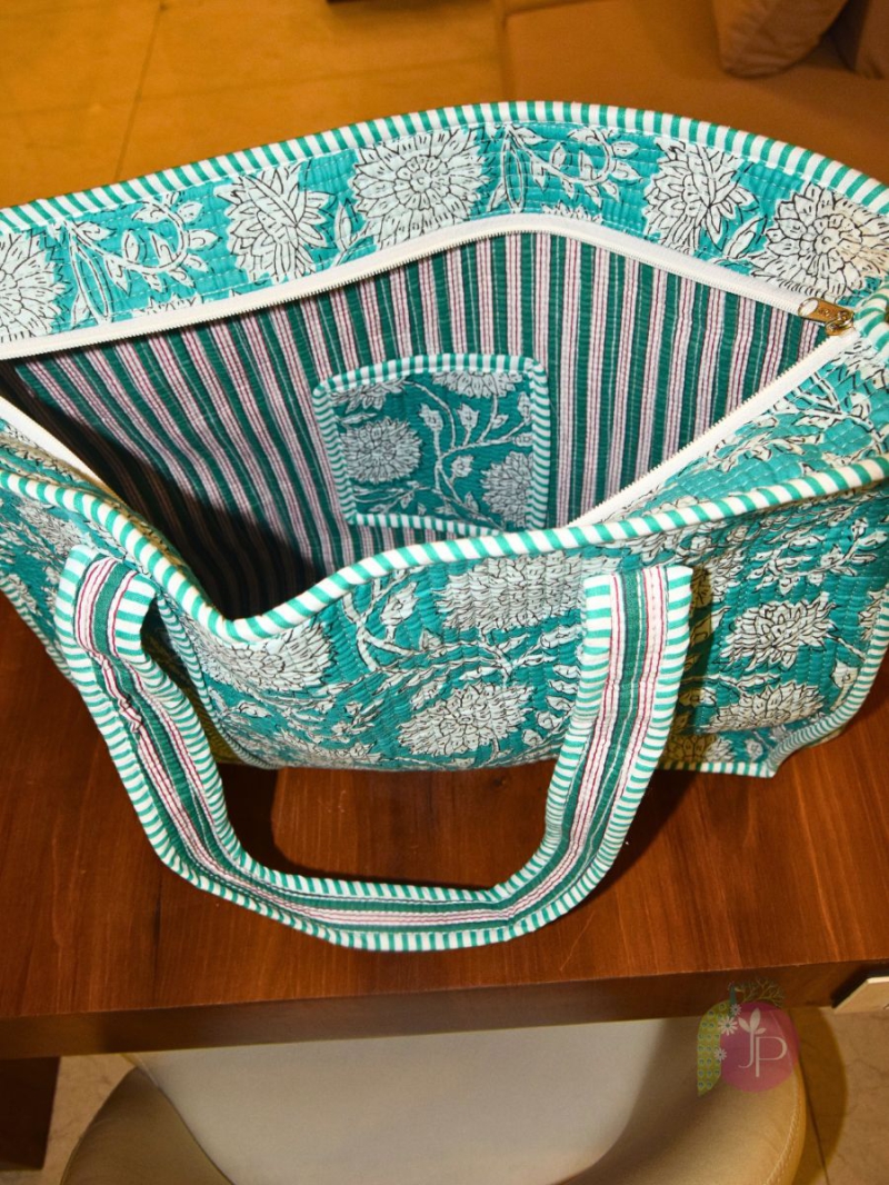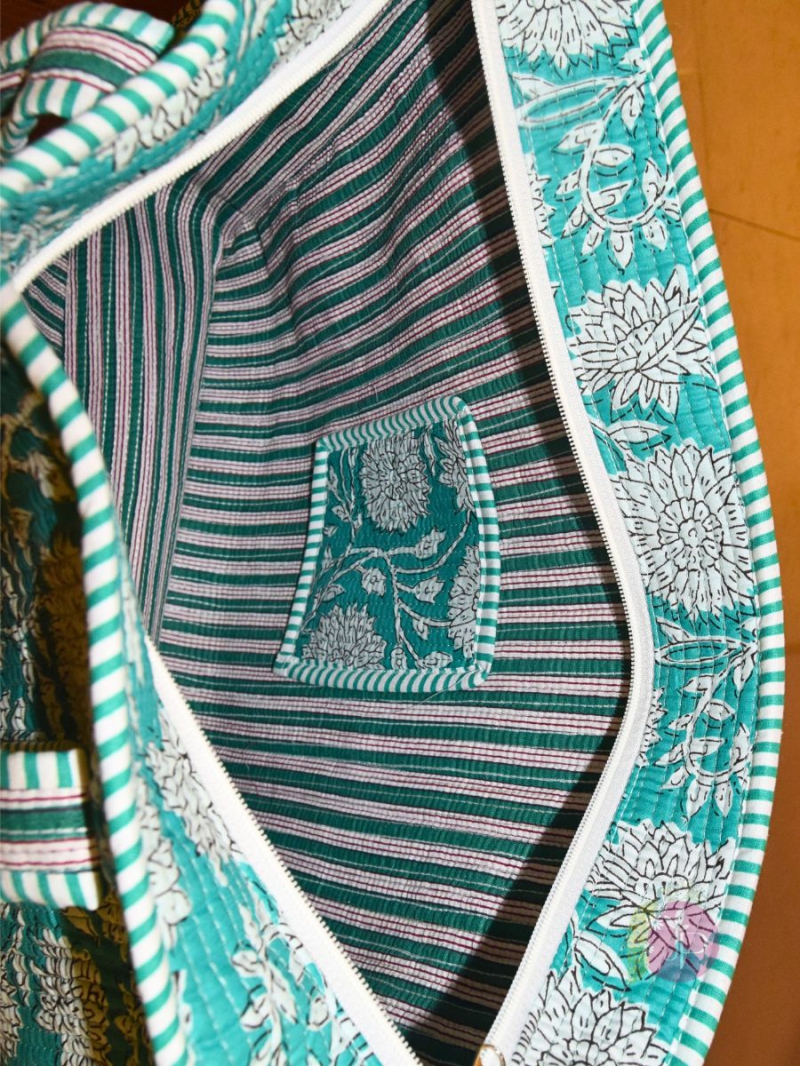 The White and Green Tote Bag is the perfect blend of classic colors and contemporary utility. Carry it with confidence knowing you’re supporting sustainable Indian craftsmanship.